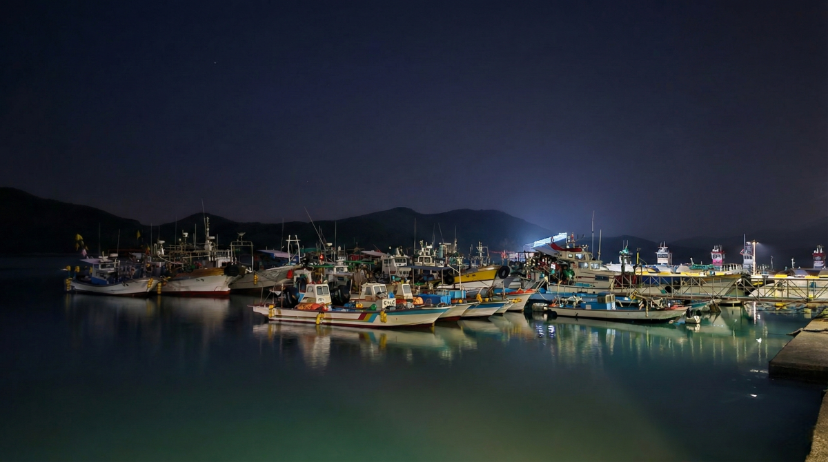 밤이 되면 덕흥항은 정박해 있는 어선들의 불빛과 고요한 산등성이가 어우러져 한 폭의 그림 같은 야경을 선사합니다. 펜션 객실에서 혹은 가벼운 밤 산책을 즐기며 이 낭만적인 풍경을 감상해 보세요.